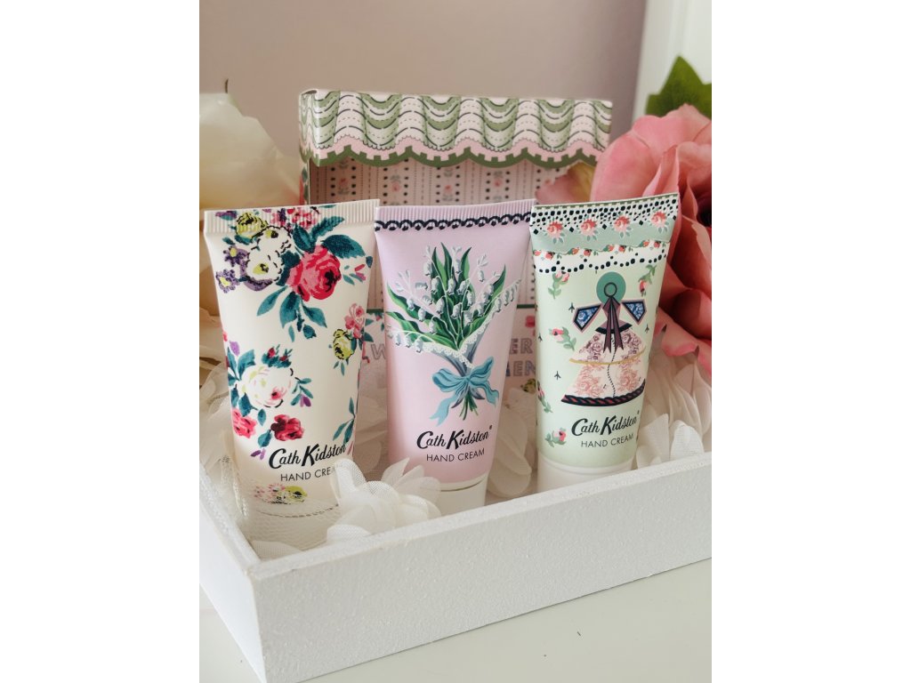 Dopřejte svým rukám každodenní rozmazlování s touto stylovou sadou krémů inspirovaných ikonickými vzory návrhářky Cath Kidston. Krémy jsou plné pečujících ingrediencí – bambuckého másla, vitamínu E, kakaového másla a esenciálních olejů – které pokožku vyživí, zjemní a krásně provoní. Díky praktickému balení se vejdou do každé kabelky, takže budou kdykoliv po ruce.